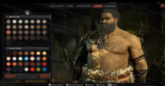 截图能够看到不少人物自定义的内容, 在游戏中我们可以通过脸型、身体、头发、视频、 颜色等选项对自己的角色进行自定义。在自定义一个角色时,可以按下R键来获得一个全随机的结果。脸型和身体的提供了8种样式,头发提供了11种样式,胡子也提供了11种样式。