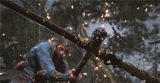 由于游戏的互动性,以及“魂like”的目标受众对于动作系统和打击感的高要求,《黑神话:悟空》里金箍棒的实战表现,将会是游戏动作系统水平高低的分水岭。在最新的实机预告片中,两段战斗里金箍棒承担了不少“戏份”,打、劈、扫、穿、挑等棍术基本动作,都组合进了连贯的攻击套路当中,还出现了棍子点地,悟空立于其上躲开地面攻击这样把想象力融入实战的设计。