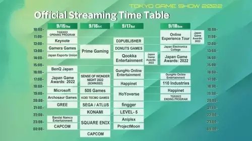 在9月15日到9月18日,东京电玩展(TGS 2022)将正式召开,目前官方已经公布了相应的直播日程表,玩家们可以在多个国内的视频直播平台看到这四天活动的直播。
