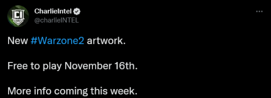 专注《使命召唤》系列情报放送的推主 CharlieIntel 透露,动视将在本周游戏发售之前向玩家公布更多有关《战区2.0》的细节。