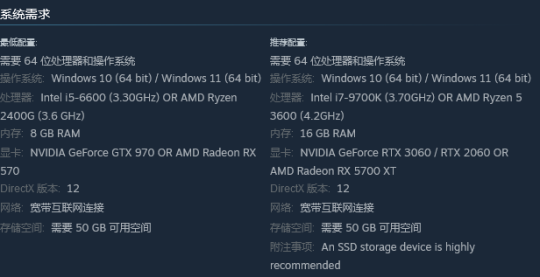 实际上,Mod的创作者推荐的PC最低配置要求高于官方,据称该游戏想要流畅运行,至少需要3200g处理器、16GBRAM和英伟达10603GB显卡。