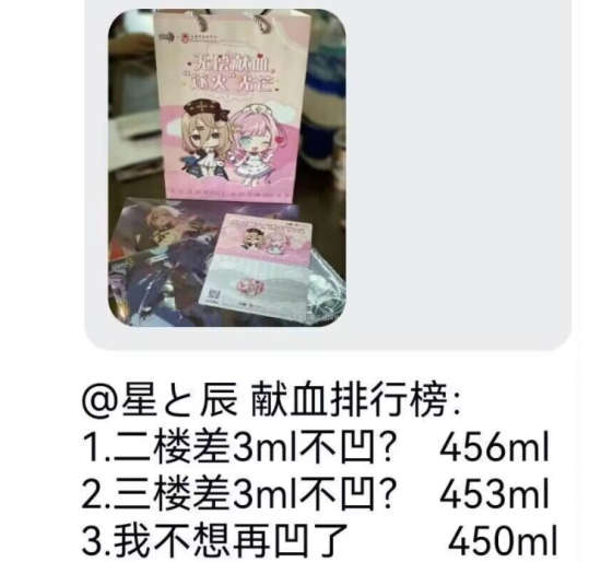 但即便是有官方背书的情况下,在某些崩坏3的玩家社区中,这个活动还是被内卷成了一个比大家谁献血多的人类迷惑行为,甚至还出现了一群“好事者”每天会统计大家的献血量,搞出了一个献血排行榜,着实让人看得费解。