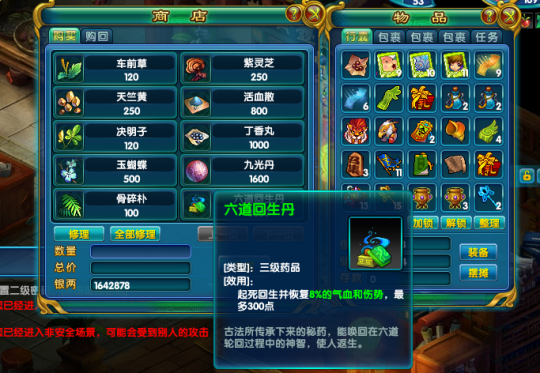 吃药复活可以说是游戏里比较常见的复活方式啦~玩家不仅可以前往主城药店购买复活药,也可以学习生产技能“炼药”自制复活药哦!生产技能等级越高,复活药的品质就会越好~如果队伍里没有奶妈可以复活的话,就别忘了多备些强力药!
