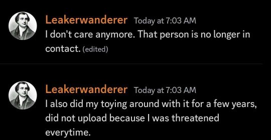 据报道,泄密者账号名为Leakerwanderer。泄密者在 Discord 上公开表示自己已经不在乎了,并声称早在2016年开始一直拥有这些文件,但每次都由于受到某种威胁而没有上传。而当中大部分文件的日期是2019年,那是他的电脑发生故障后转移文件的时间。现在他对这些文件并没有任何法律约束力。